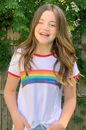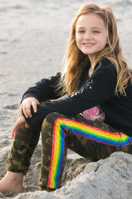 This ultra soft, fantastically pink, candy rainbow hoodie was co-designed with a special little girl named Aria. Aria is 8 years old and fighting the ultimate fight against Neuroblastomo cancer. Portions of every sale of our limited edition hoodie will go towards Pediatric Cancer Research so that children like Aria never have to face this monster again.